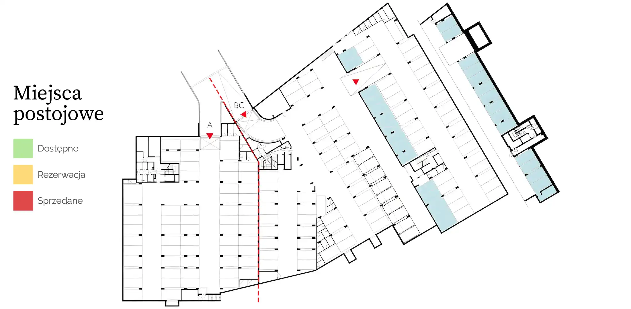 | Budynek 40/42 - B/C | MP174 | A | -1 | 1 | Garage | 12,50m2 | 0,00m2 | Brak | Sold |