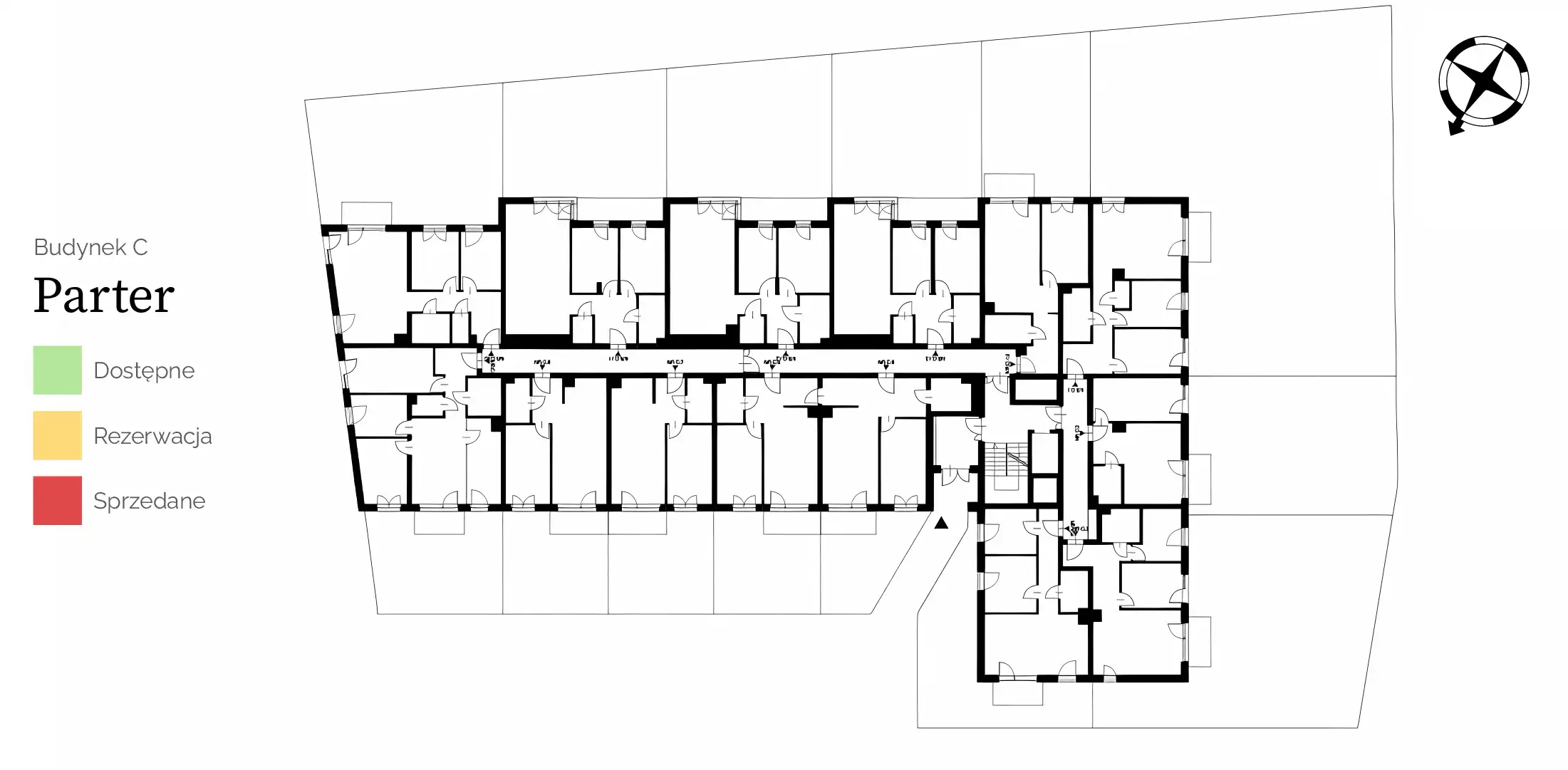 | 42 – C | C8 | A | 0 | 2 | Apartment | 44,40m2 | 39,00m2 | Ogród | Sold |
