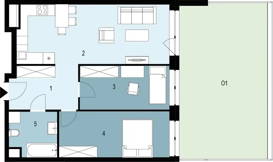Apartament 01.K2.02 Floor 1 Area 63.04 m2 Rooms 3