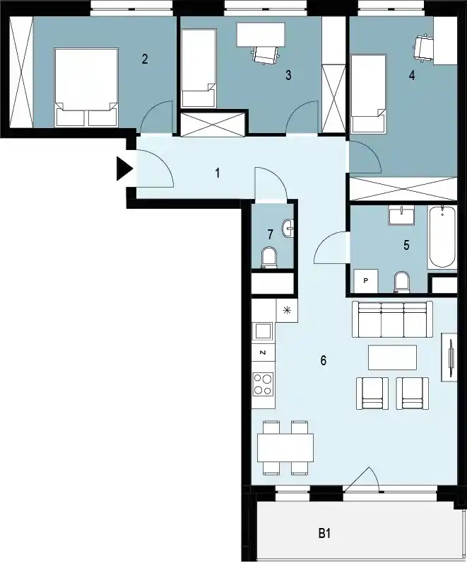 Apartament 02.K1.01 Floor 2 Area 78.78 m2 Rooms 4
