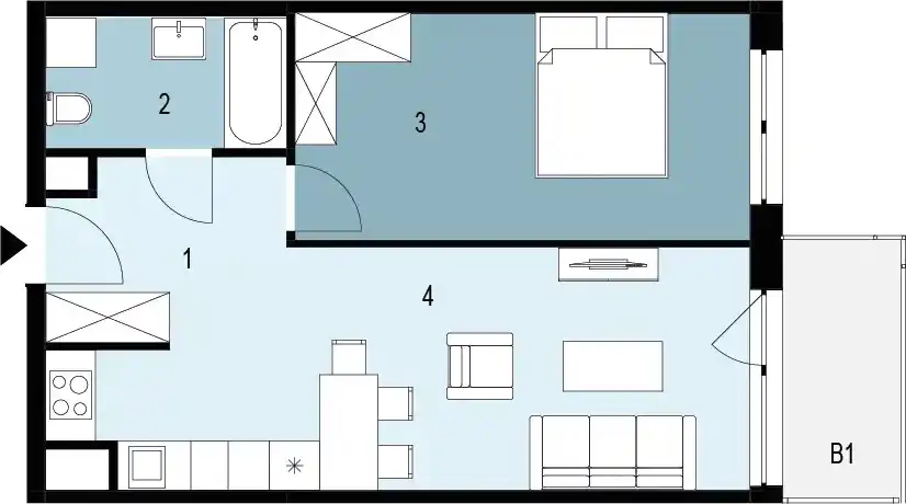 Apartament 06.K2.03 Floor 6 Area 46.91 m2 Rooms 2