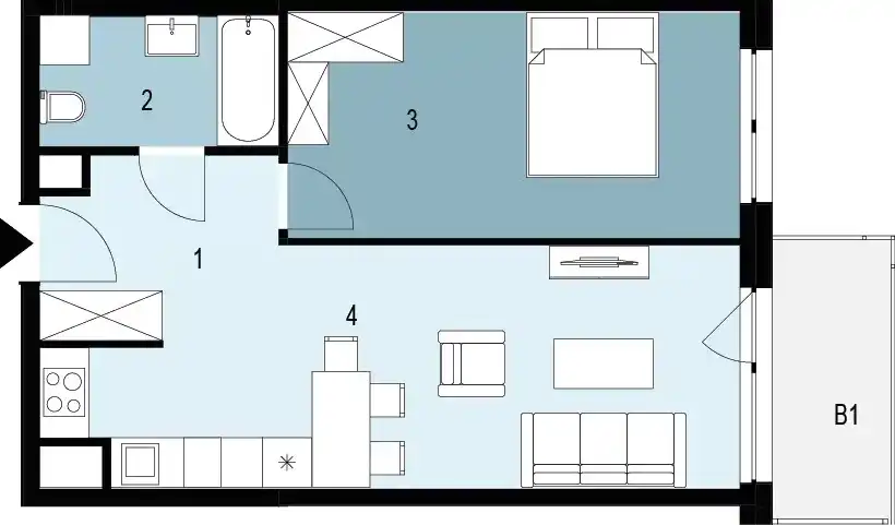 Apartament 07.K2.05 Floor 7 Area 46.77 m2 Rooms 2