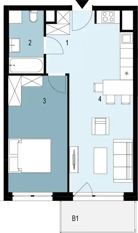 Apartament 07.K2.10 Floor 7 Area 46.53 m2 Rooms 2