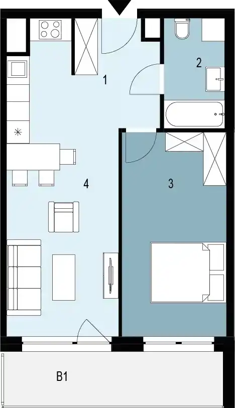 Apartament 08.K1.06 Floor 8 Area 46.40 m2 Rooms 2