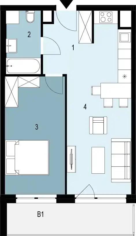 Apartament 08.K1.07 Floor 8 Area 46.47 m2 Rooms 2