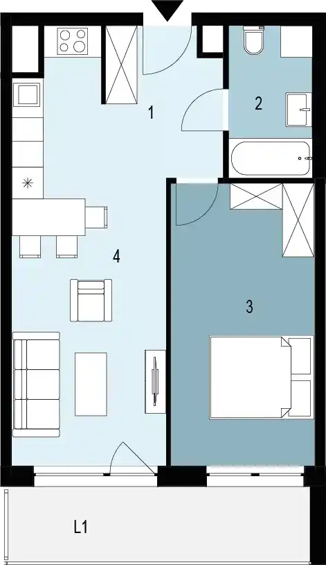 Apartament 09.K1.04 Floor 9 Area 46.34 m2 Rooms 2