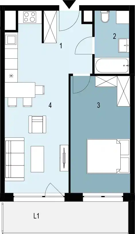 Apartament 09.K1.06 Floor 9 Area 46.40 m2 Rooms 2