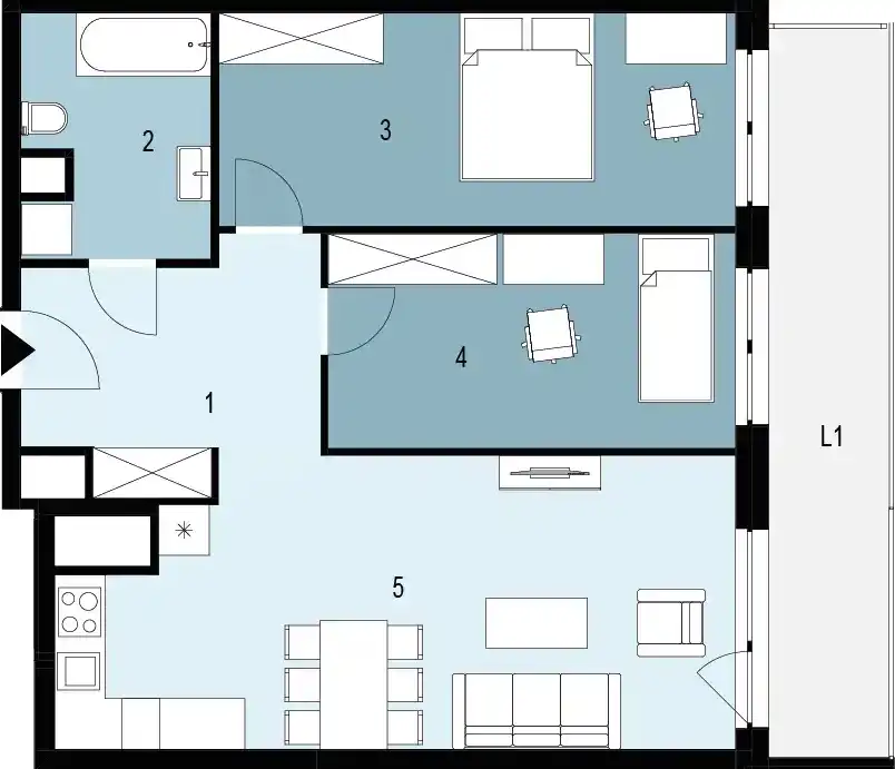 Apartament 09.K2.06 Floor 9 Area 69.33 m2 Rooms 3