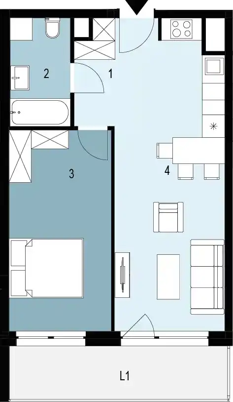 Apartament 09.K2.09 Floor 9 Area 46.53 m2 Rooms 2
