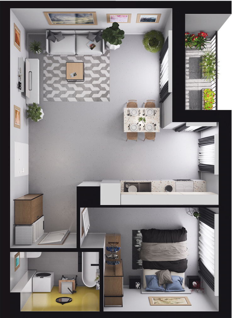 3 Room 10,72 m2