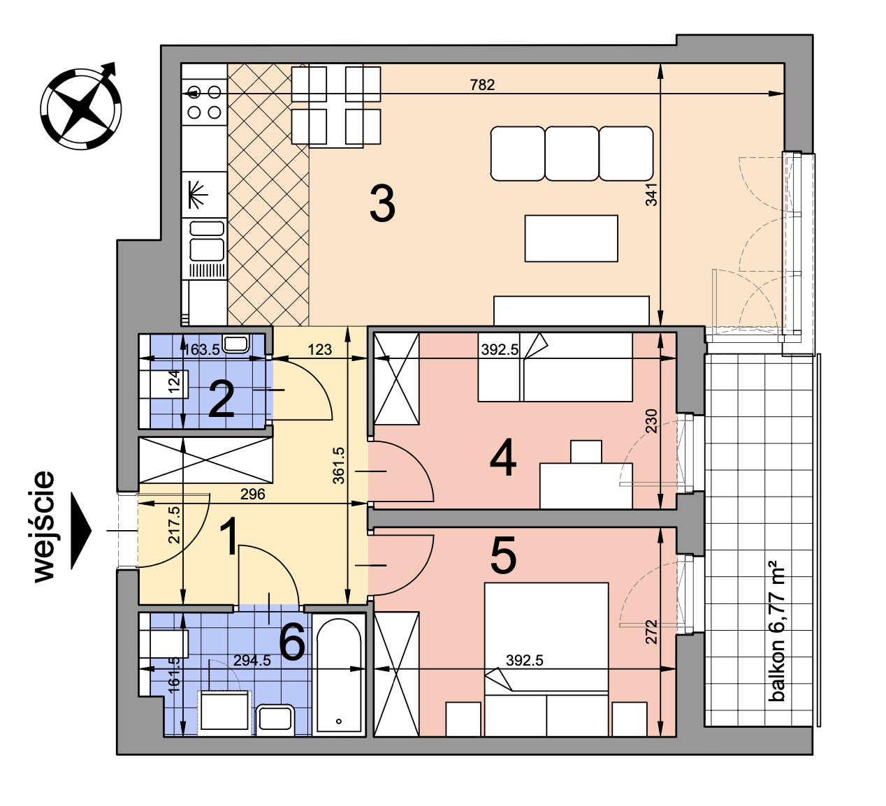 3 Living room with kitchenette 26,67 m2