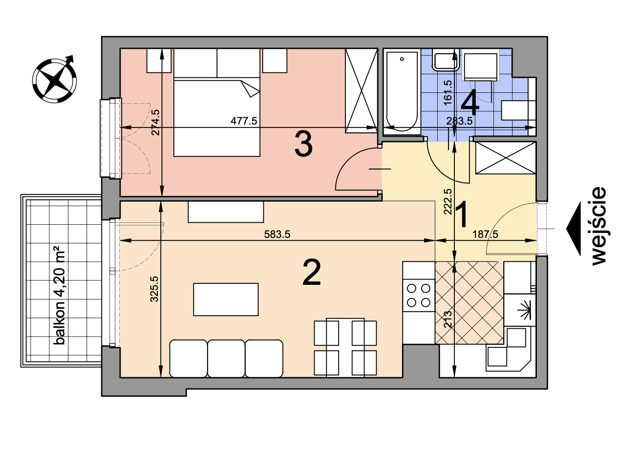 Apartament C48 Floor 3 Area 45.44 m2 Rooms 2