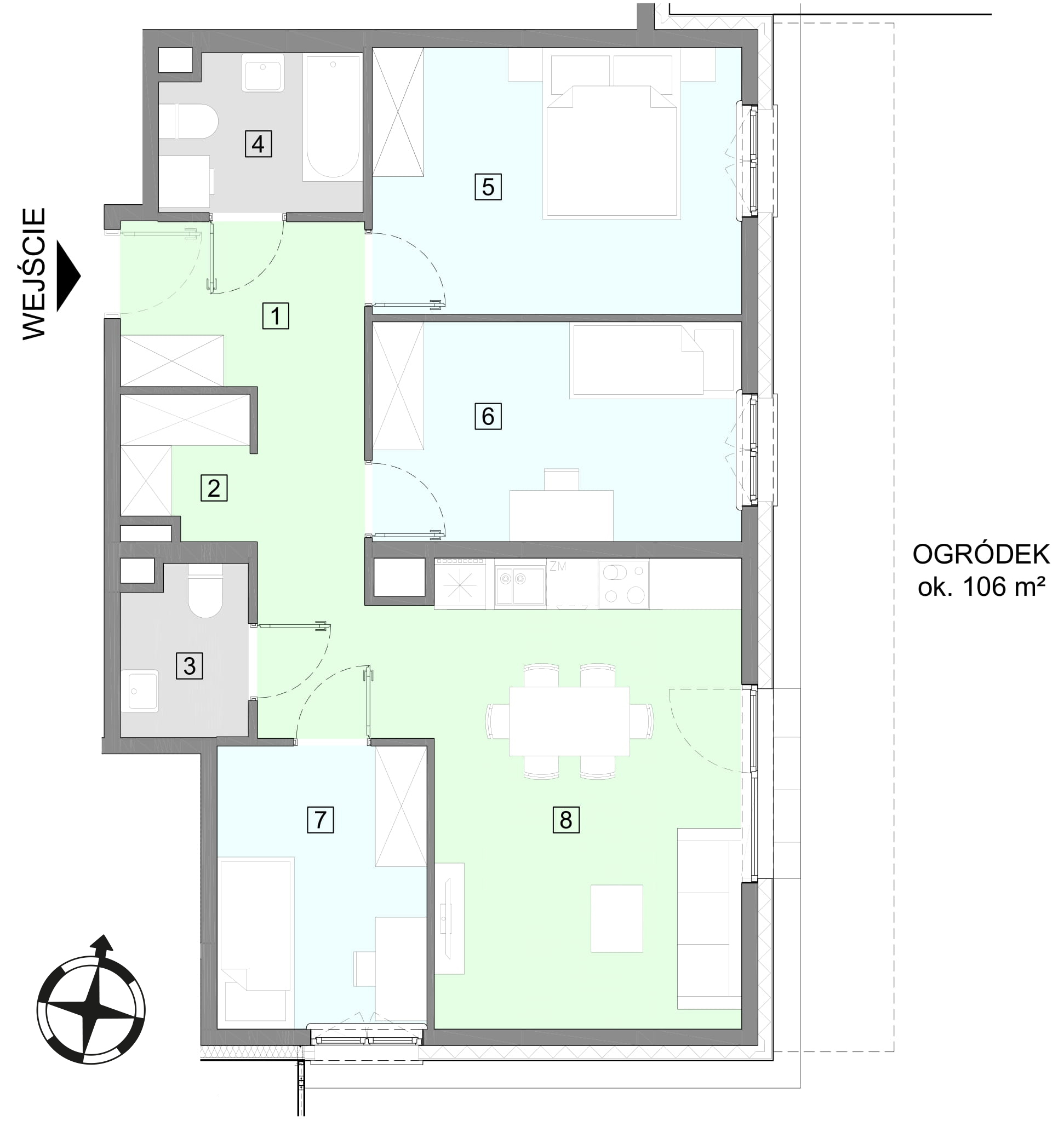 Mieszkanie A1_M01 Piętro 0 Powierzchnia 71.94 m2 Pokoje 4