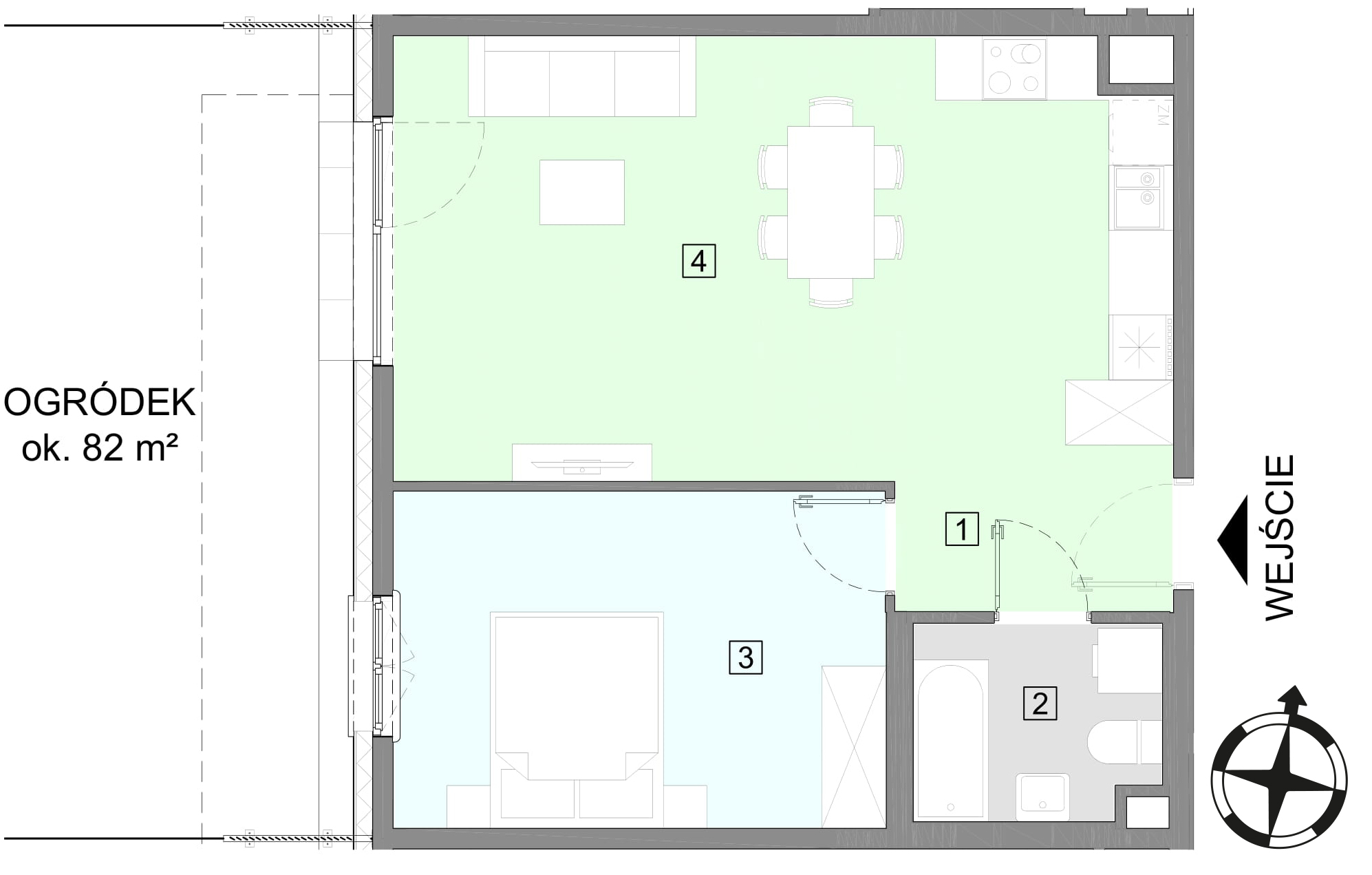 Mieszkanie A1_M04 Piętro 0 Powierzchnia 50.14 m2 Pokoje 2