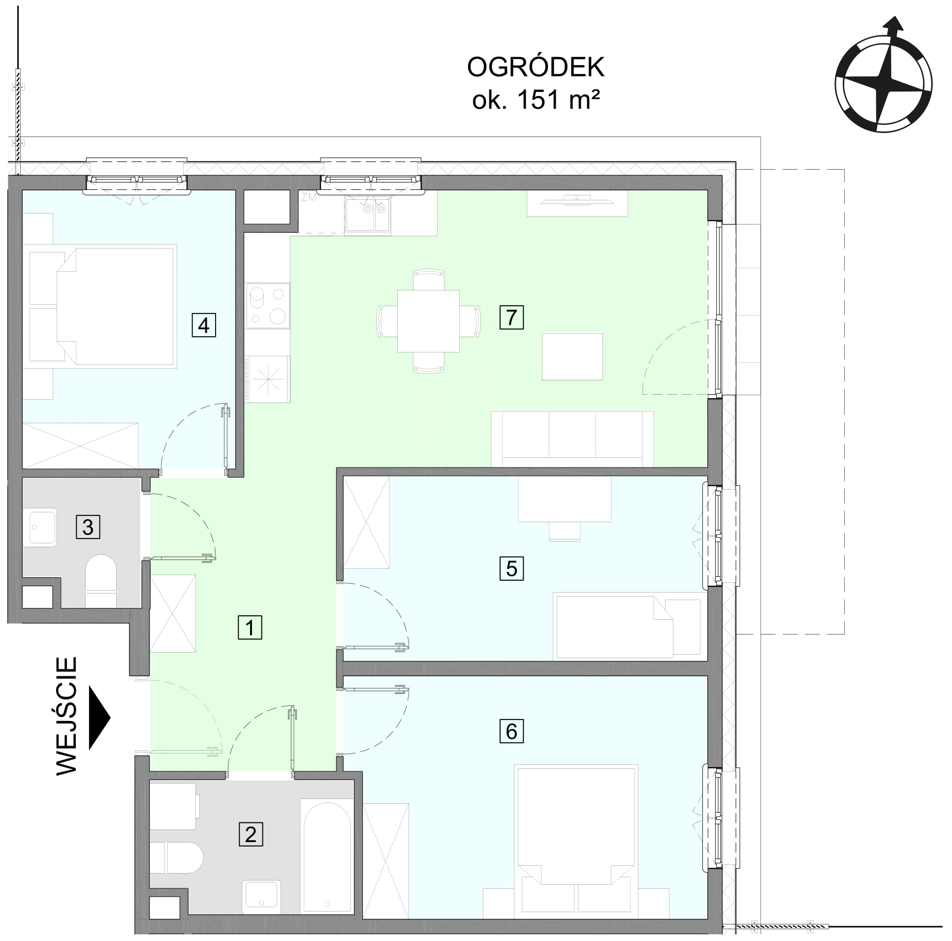 Mieszkanie A1_M06 Piętro 0 Powierzchnia 72.08 m2 Pokoje 4