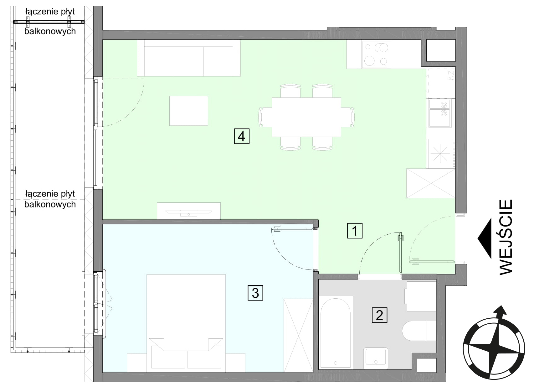 Mieszkanie A1_M11 Piętro 1 Powierzchnia 45.67 m2 Pokoje 2