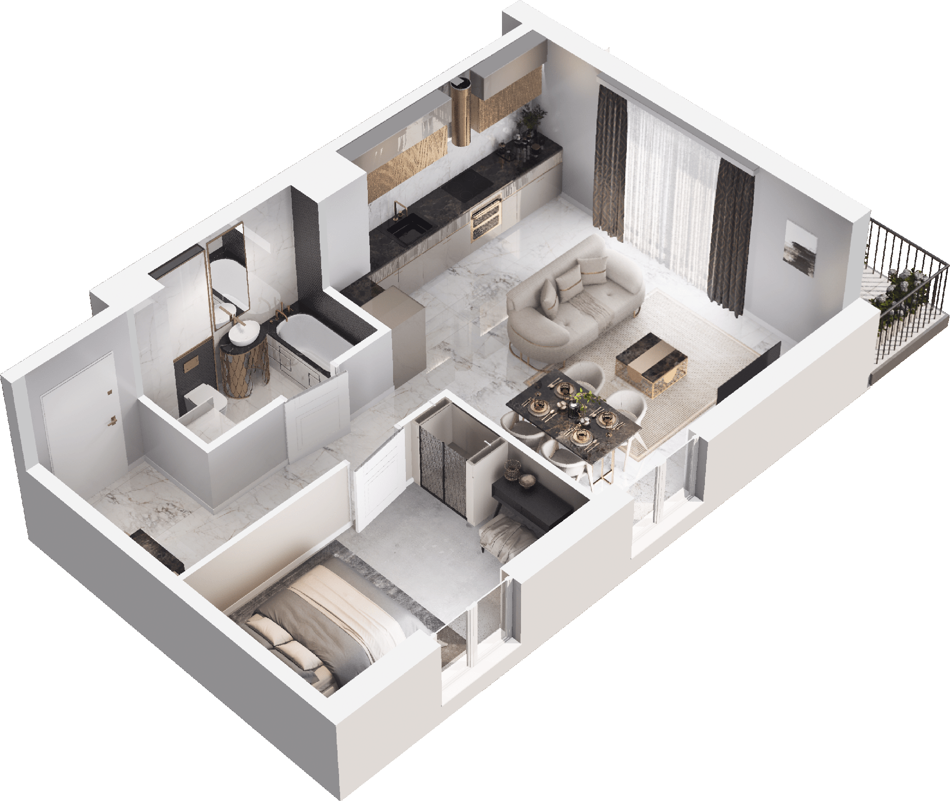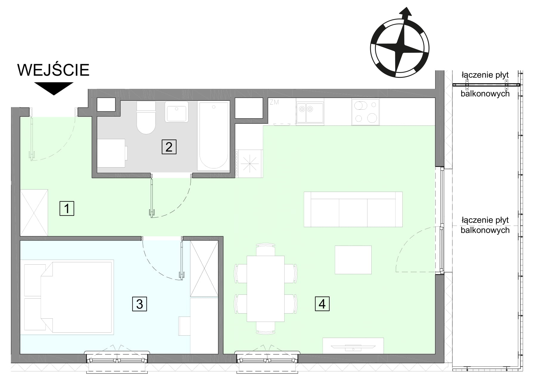 Mieszkanie A1_M17 Piętro 2 Powierzchnia 45.26 m2 Pokoje 2