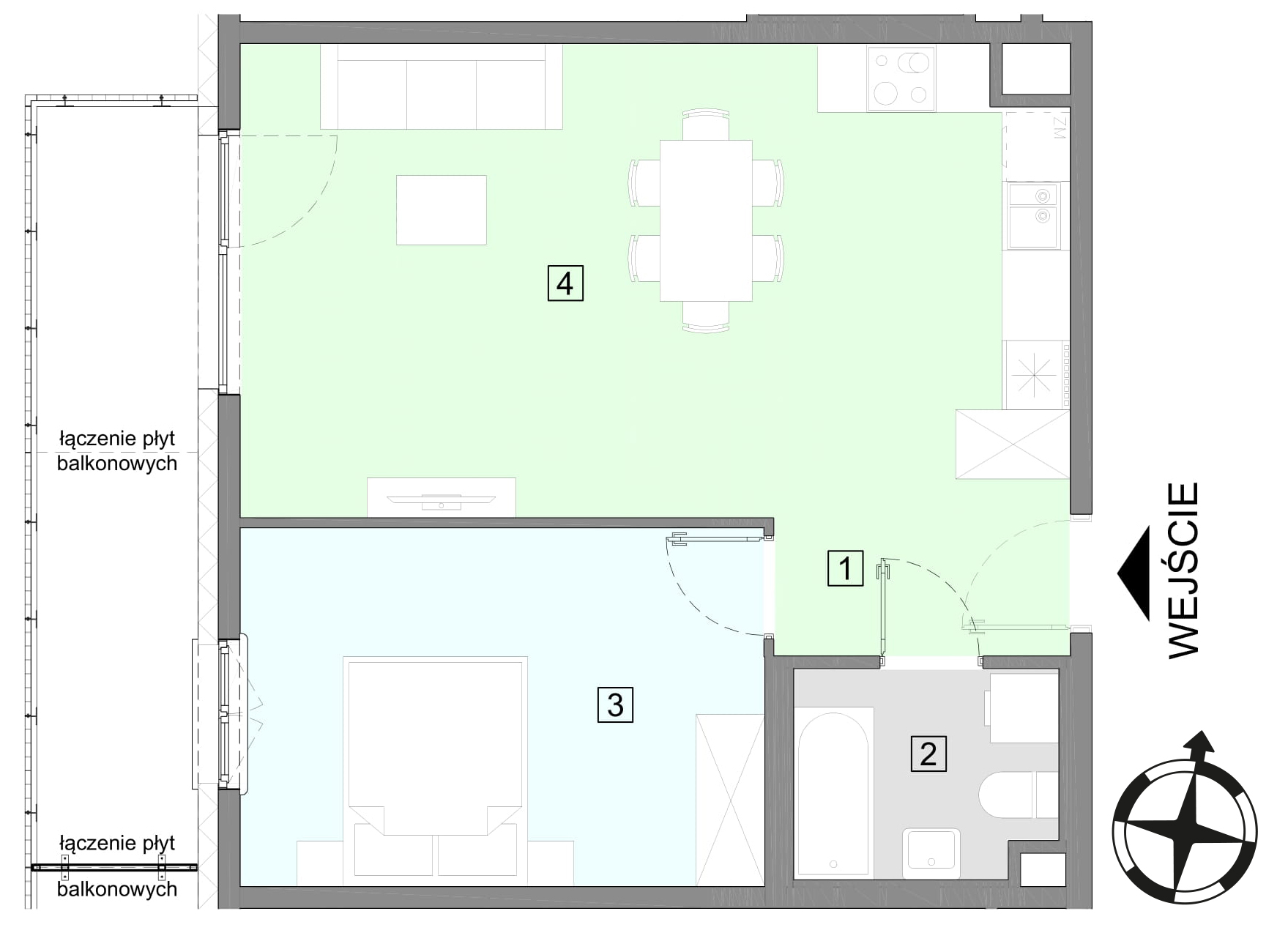 Mieszkanie A1_M20 Piętro 2 Powierzchnia 50.25 m2 Pokoje 2