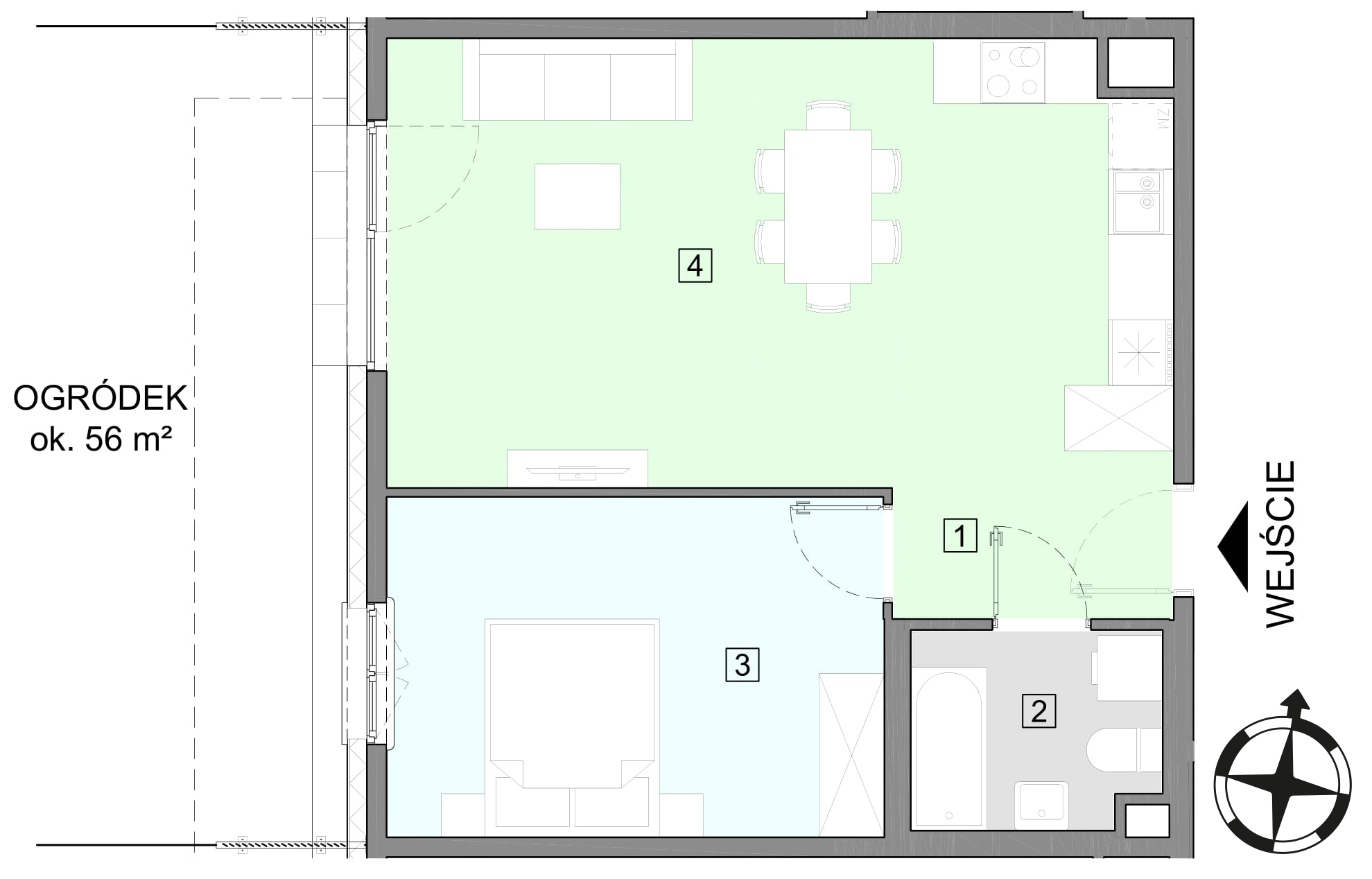 Mieszkanie A2_M04 Piętro 0 Powierzchnia 50.14 m2 Pokoje 2