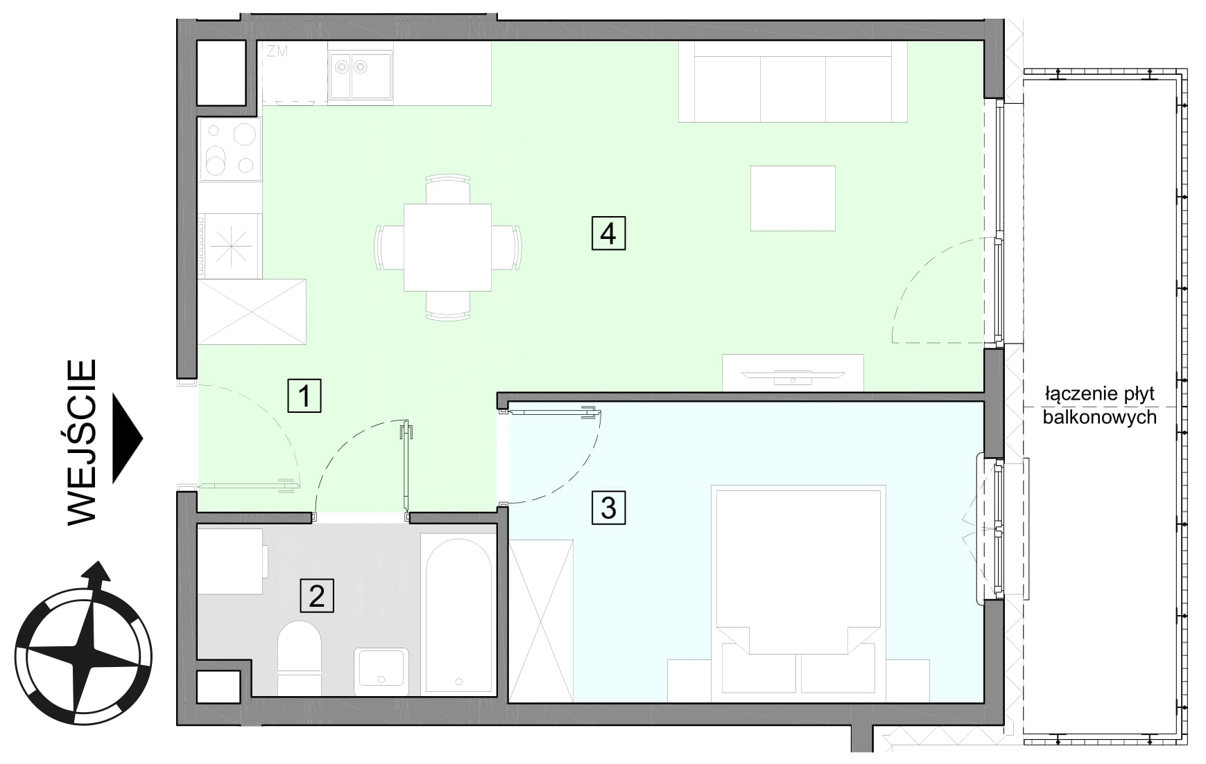 Mieszkanie A3_M23 Piętro 2 Powierzchnia 41.68 m2 Pokoje 2