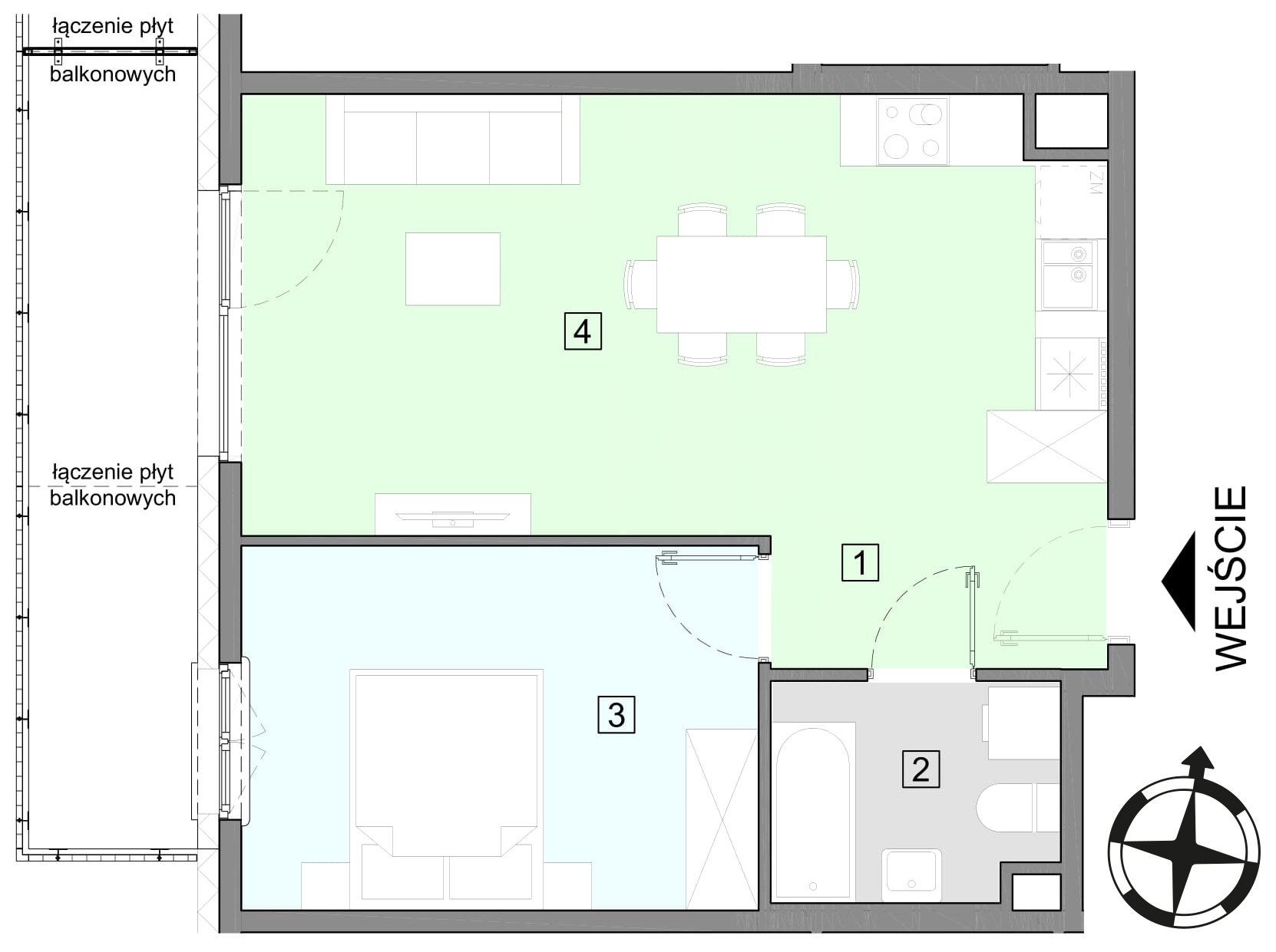 Mieszkanie A3_M25 Piętro 3 Powierzchnia 45.67 m2 Pokoje 2