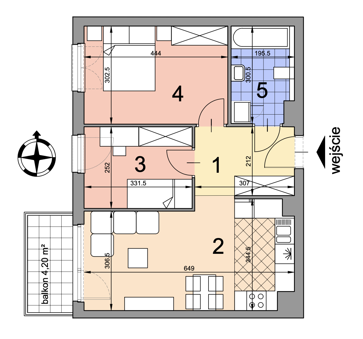 Mieszkanie B20 Piętro 1 Powierzchnia 54.67 m2 Pokoje 3