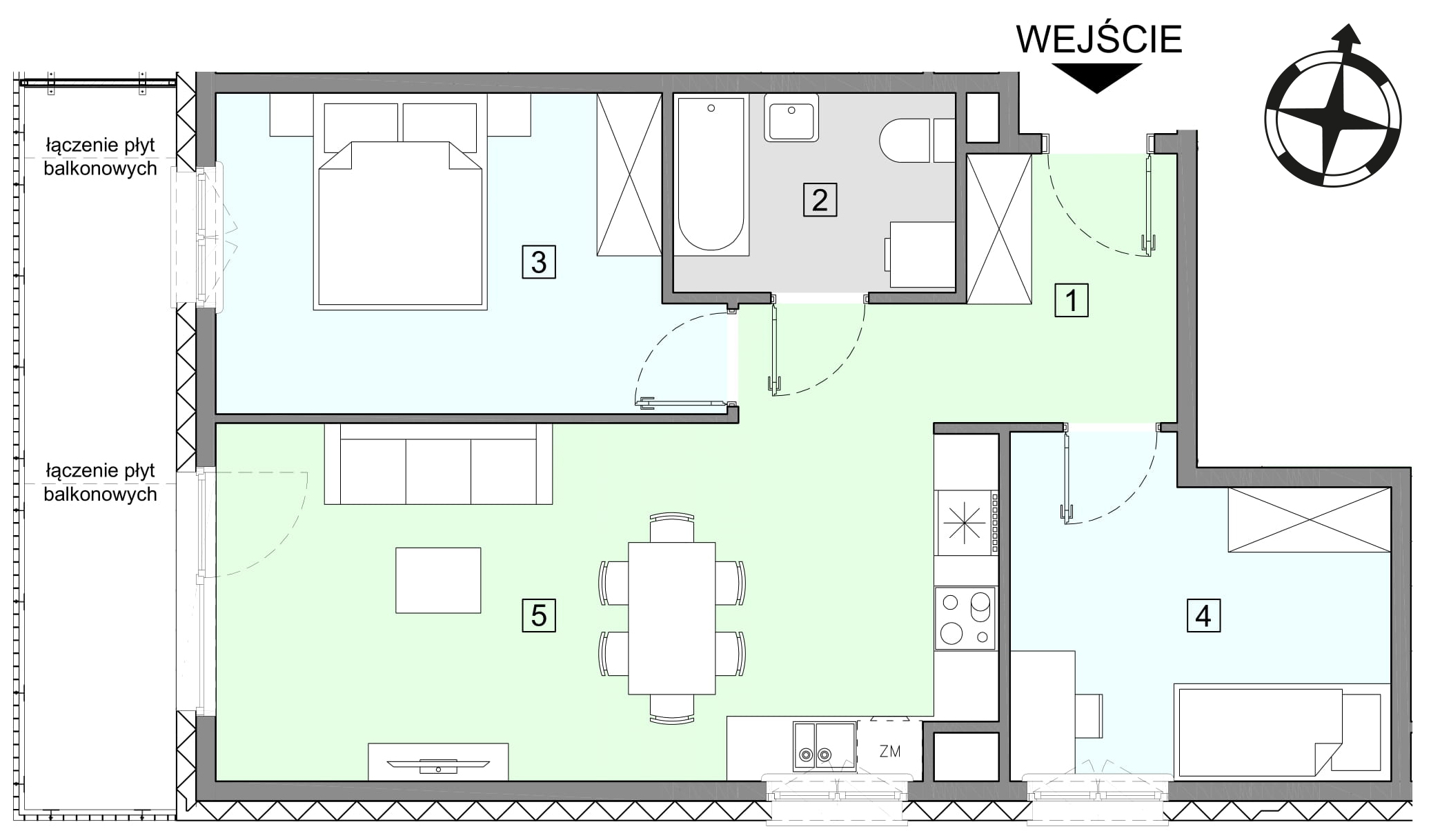 Mieszkanie D1_M09 Piętro 1 Powierzchnia 57.64 m2 Pokoje 3