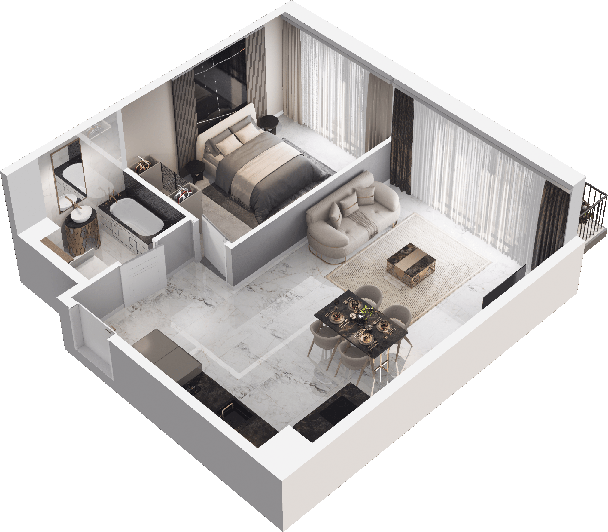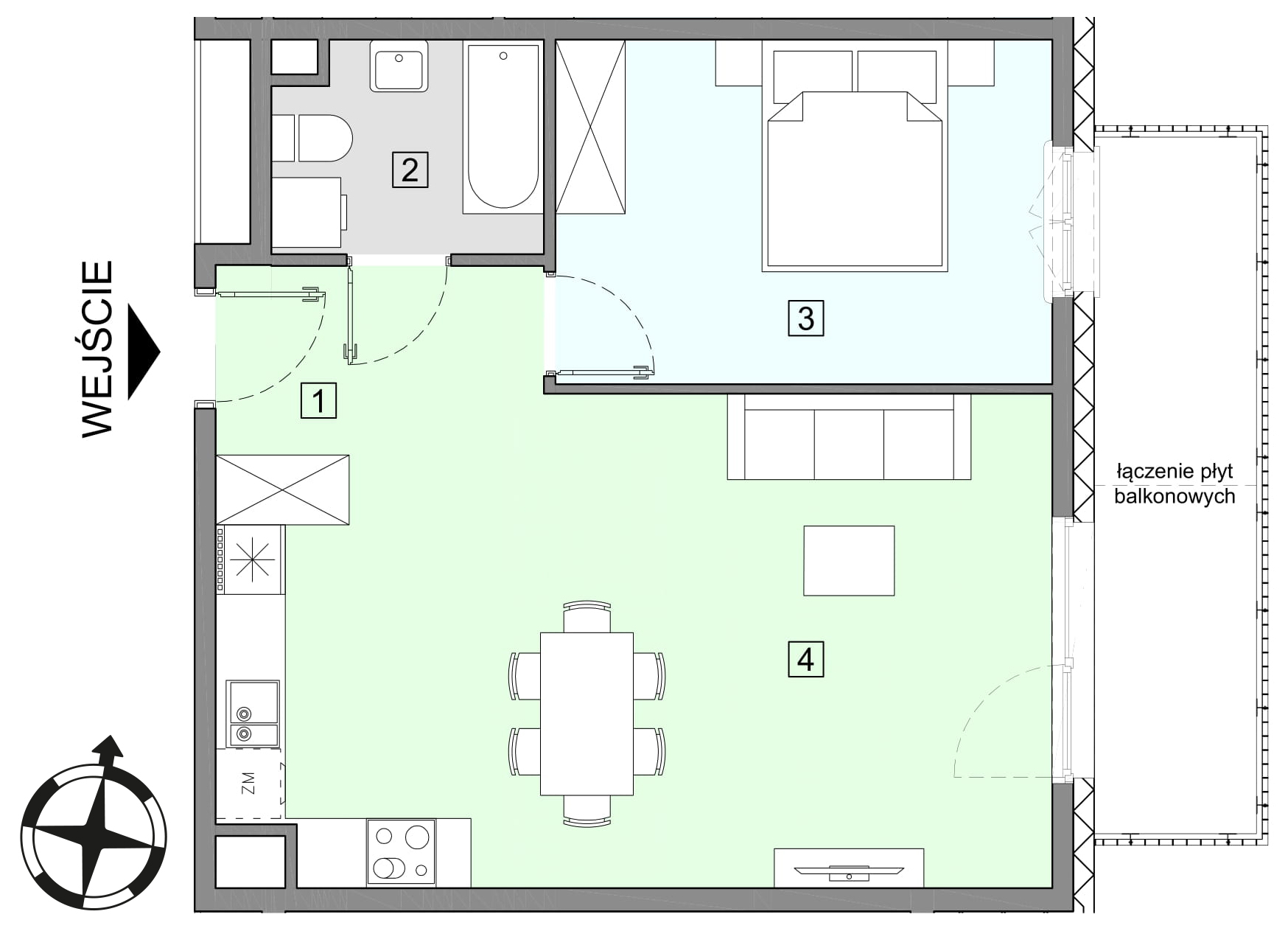 Mieszkanie D1_M28 Piętro 3 Powierzchnia 49.75 m2 Pokoje 2