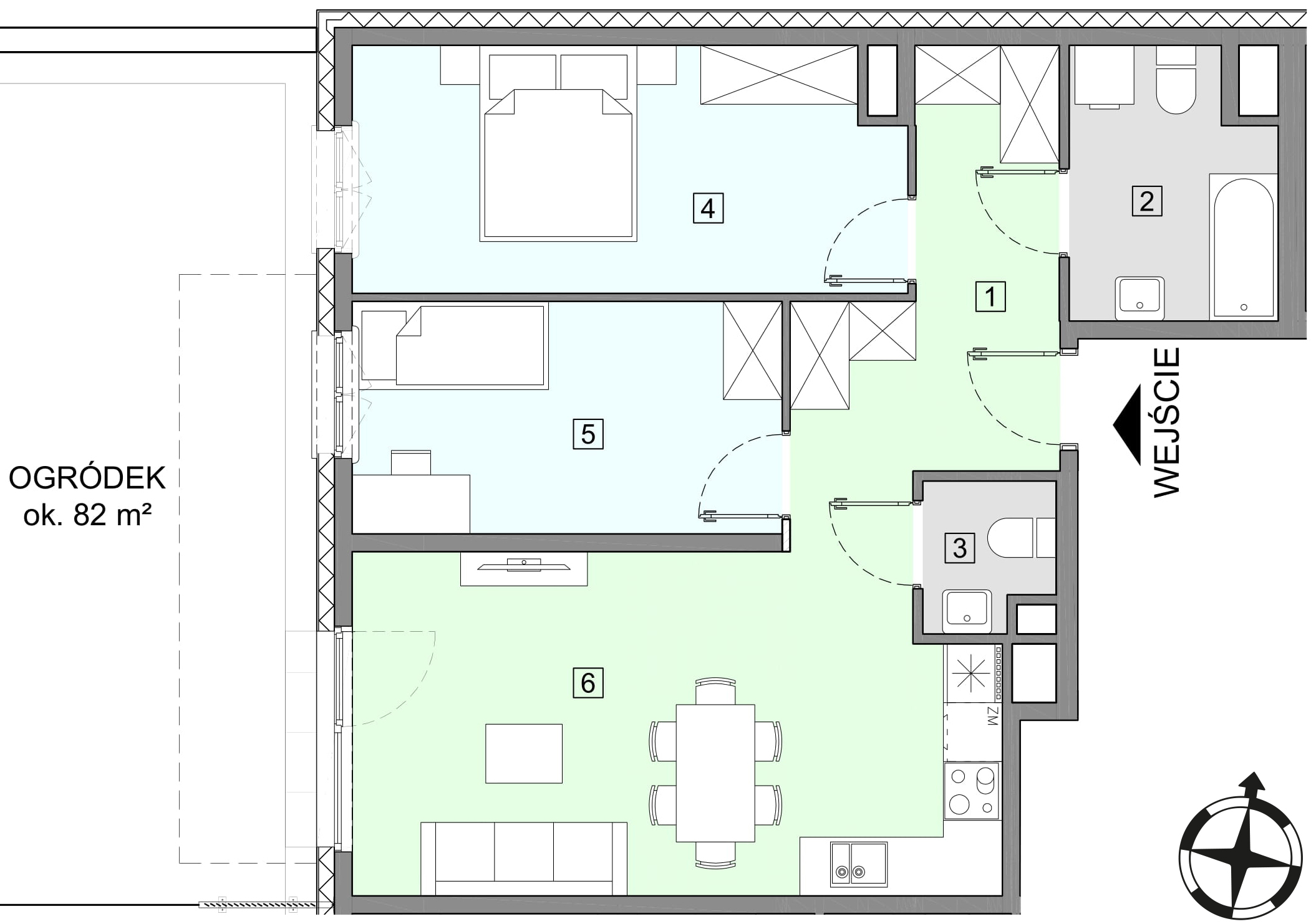 Mieszkanie D2_M05 Piętro 0 Powierzchnia 62.78 m2 Pokoje 3