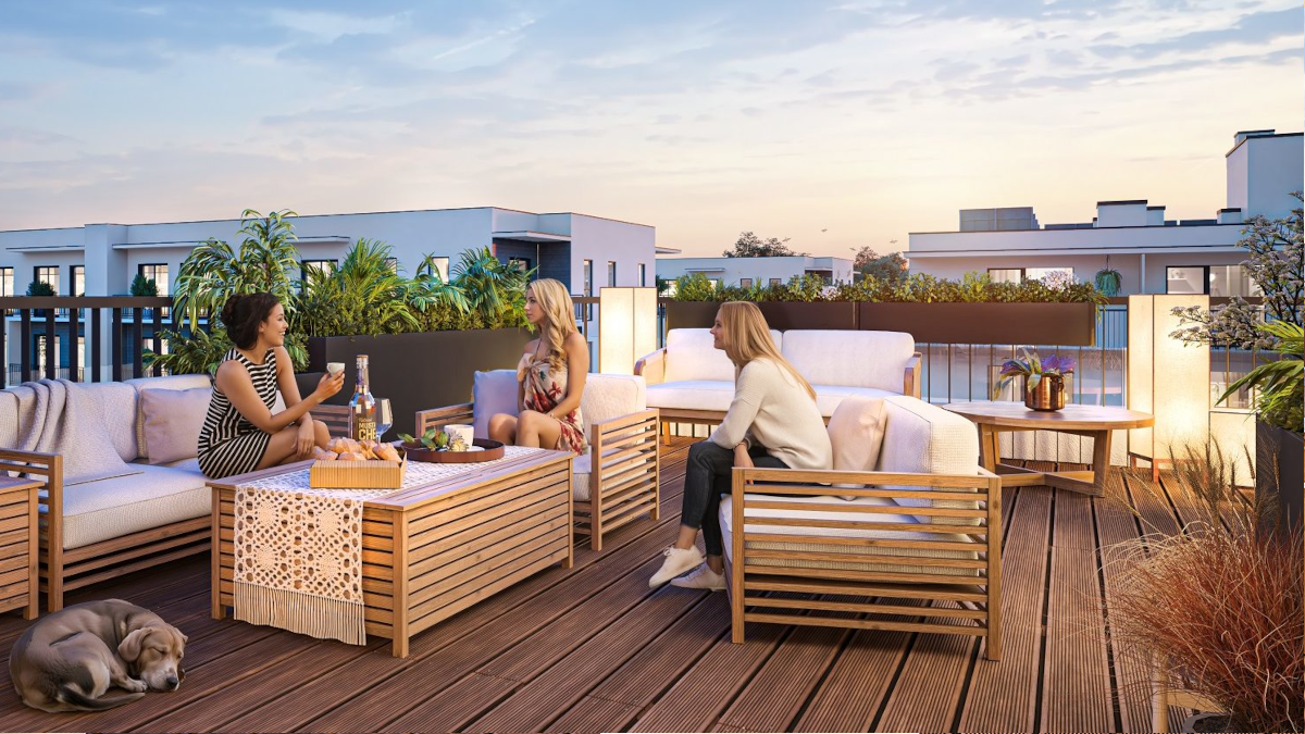 Mieszkania na parterze będą miały dostęp do prywatnych ogródków o powierzchni nawet do 244 m². Natomiast lokale na wyższych piętrach posiadają przestronne balkony lub tarasy – największy apartament ma taras o powierzchni aż 52 m².